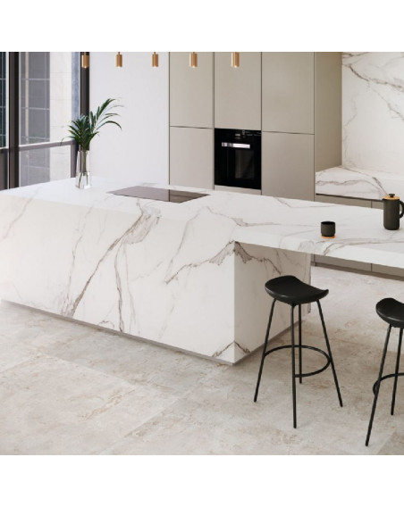 Inspirado en el mármol estatuario italiano, este producto se distingue por su acabado sedoso y sus vetas grises elegantes sobre un fondo blanco puro.