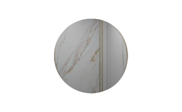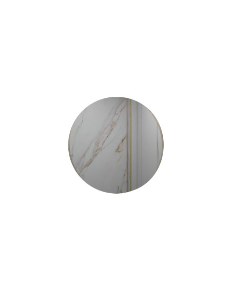 Un espejo redondo de 60 cm de diámetro con marco en MDP. Debe ser usado únicamente en interiores, no exponer al sol directo, ni fuentes de calor.