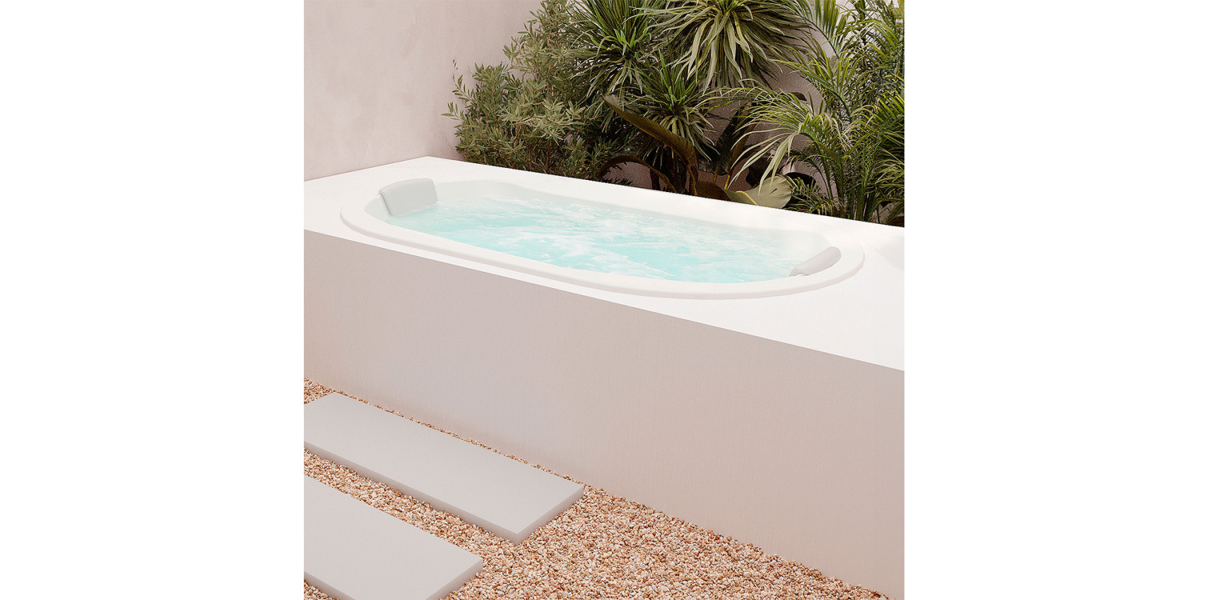 Jacuzzi de empotrar ideal para dos personas, con un diseño ergonómico y 8 potentes jets que proporcionan masajes en las principales zonas musculares del cuerpo.