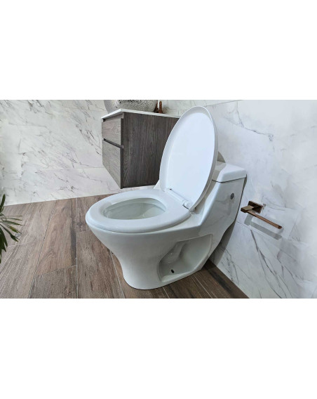 Diseño elegante y compacto ideal para espacios reducidos. Posee sistema de caída lenta. Un moderno sistema de anillo cerrado que facilita la limpieza. Grifería garantizada.